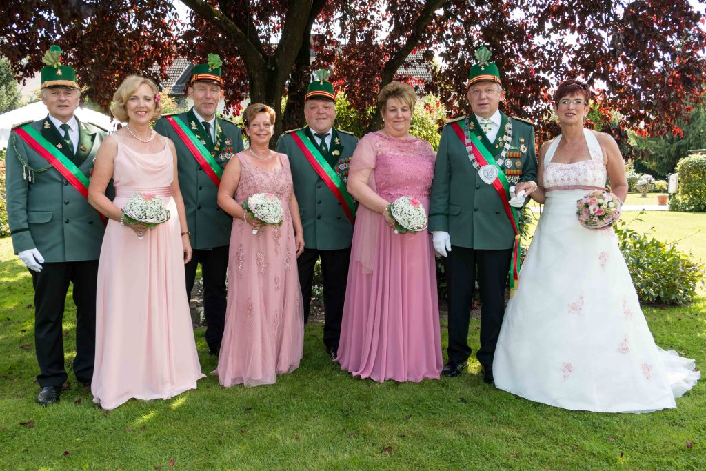 Unser Hofstaat zum Schützenfest 2017: Alois und Marlis Meermeier, Harald und Marianne Kutz, Martin und Susanne Berkemeier mit dem Königspaar Rainer und Edith Düsterhus